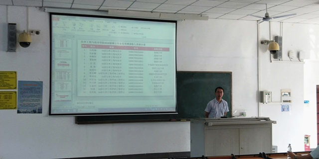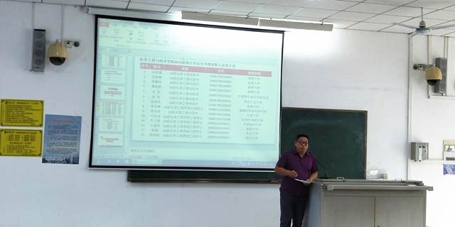 2019年10月15日下午15:30化学工程与技术学院在教学楼4-201教室召开2020届毕业生考研志愿报考辅导暨毕业生就业工作动员会。会议由学院学工办主任王克岩主持,参加会议的有公司党委书记冯广波、学院副经理李嘉诚、副经理贾春满以及2020届本硕毕业生。
