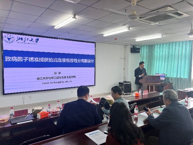 大连理工大学刘毅教授介绍了近年来他在MOF膜用于碳捕获与海水提铀方面的研究进展。内蒙古大学赵再望教授分享了他在能源介孔材料方面的研究成果。清华大学王海辉教授介绍了他在电化学合成MOF膜方面的最新成果。浙江大学张林教授分享了他在高血液相容性膜材料在致病因子精准捕获方面的研究进展。南京工业大学仲兆祥教授分享了他在国家自然科学基金申报方面的心得体会。师生与各位专家进行了积极的互动交流。